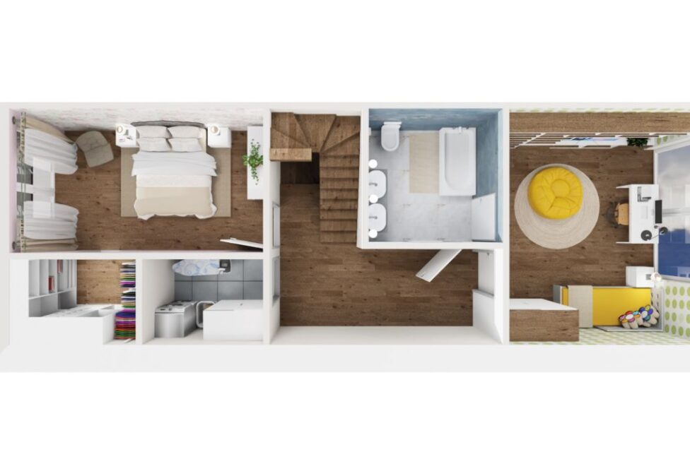 - Przemyślany rozkład – 4 sypialnie, 2 łazienki, garaż