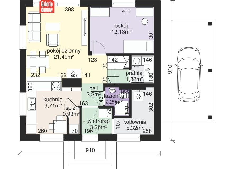 -instalacja fotowoltaiczna z bankiem energii – dzięki czemu dom jest niemal samowystarczalny energetycznie.