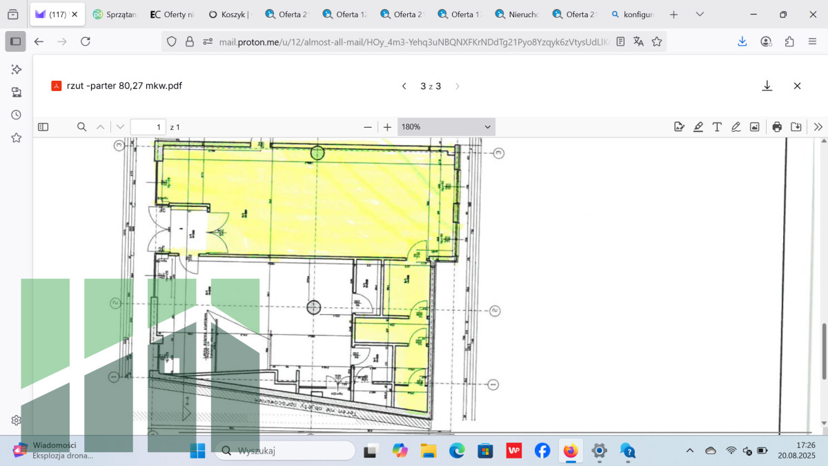 Informacje dodatkowe: wejście z przedsionka, obok jest drugi lokal ( o powierzchni – 80,27 mkw. ) i opcja połączenia ich razem
