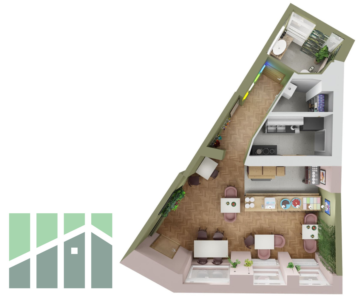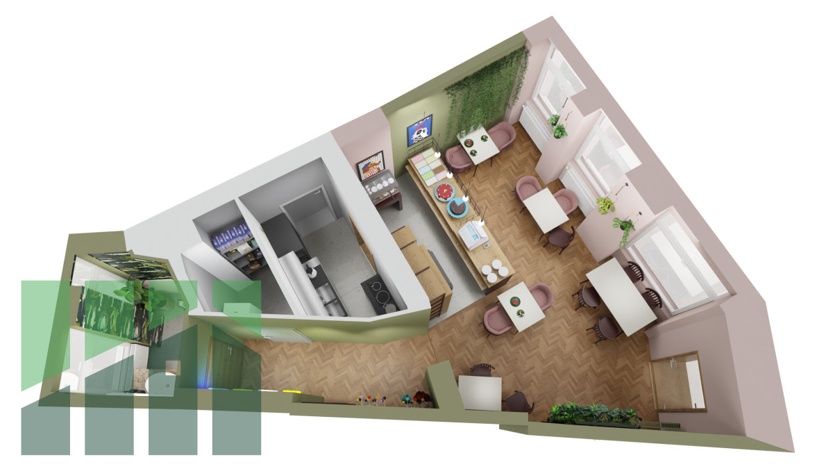 • zaplecza z osobnym wejściem i dwoma dodatkowymi pomieszczeniami oraz toaletą
