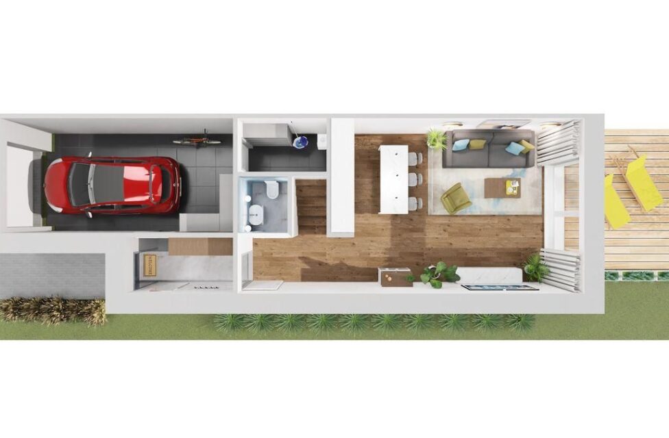 - Przemyślany rozkład – 4 sypialnie, 2 łazienki, garaż + podjazd na dodatkowe 2 auta