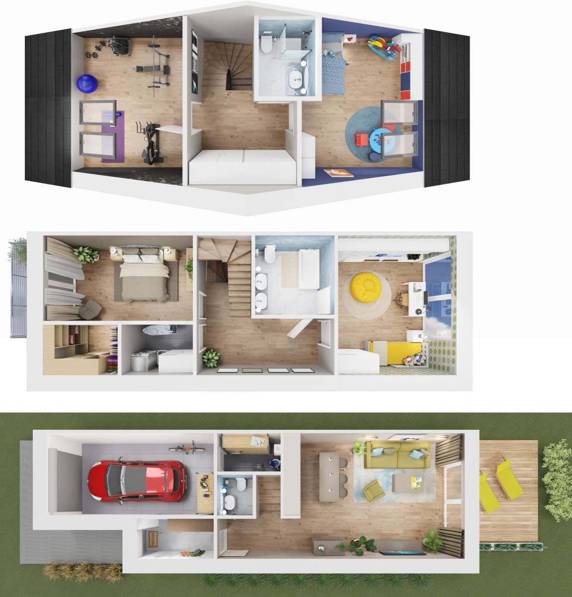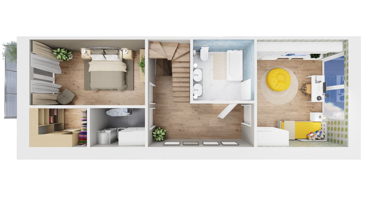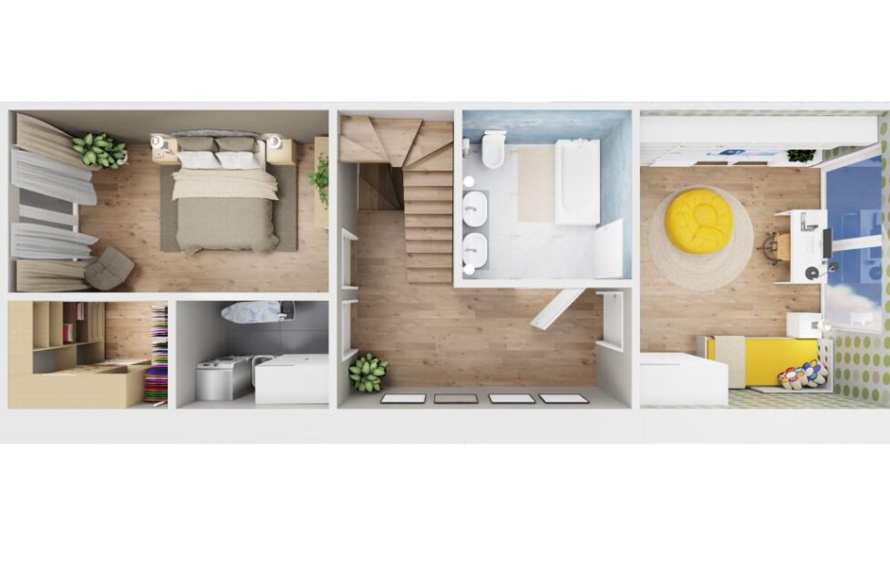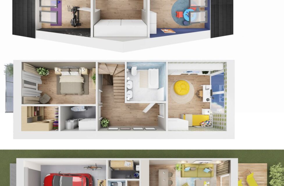 - Przemyślany rozkład – 4 sypialnie, 2 łazienki, garaż + podjazd na dodatkowe 2 auta