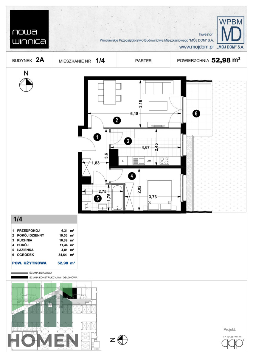 Mieszkanie o powierzchni 52,64 m² z osobną kuchnią i prywatnym ogródkiem to idealne miejsce dla osób ceniących komfort, przestrzeń i bliskość natury. Wyobraź sobie poranki przy kawie w swoim ogródku, popołudnia spędzone na świeżym powietrzu, zabawy dzieci i spotkania z rodziną i przyjaciółmi w otoczeniu zieleni.