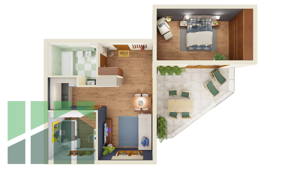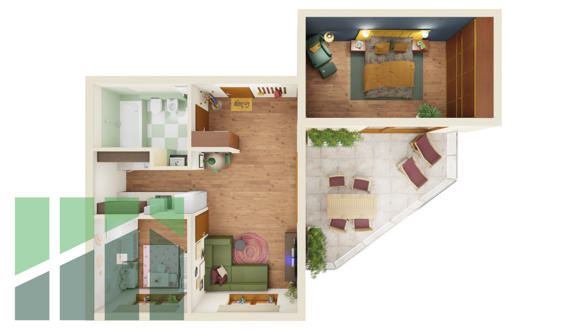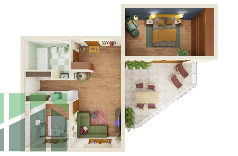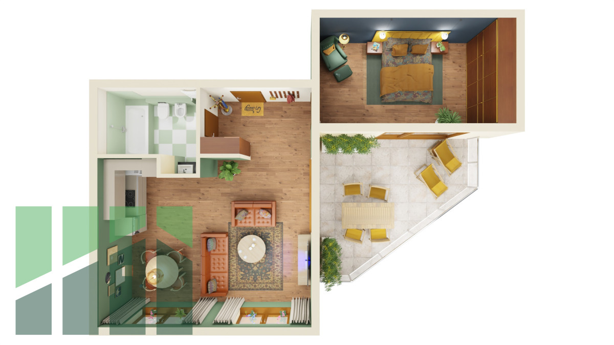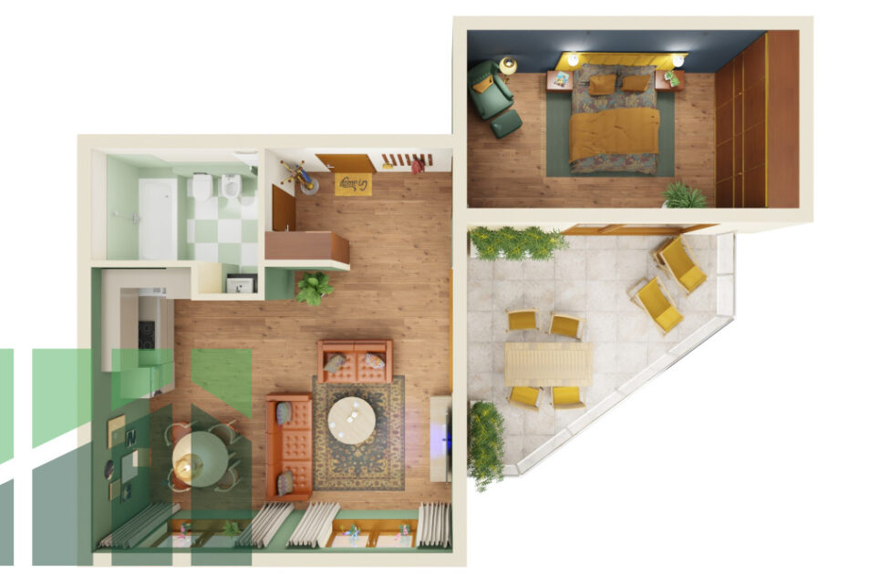 • duzy salon z aneksem kuchennym (35,5 m²) – możliwość wydzielenia dodatkowego pokoju