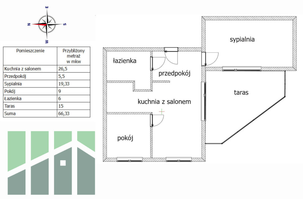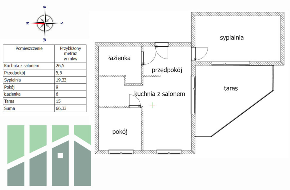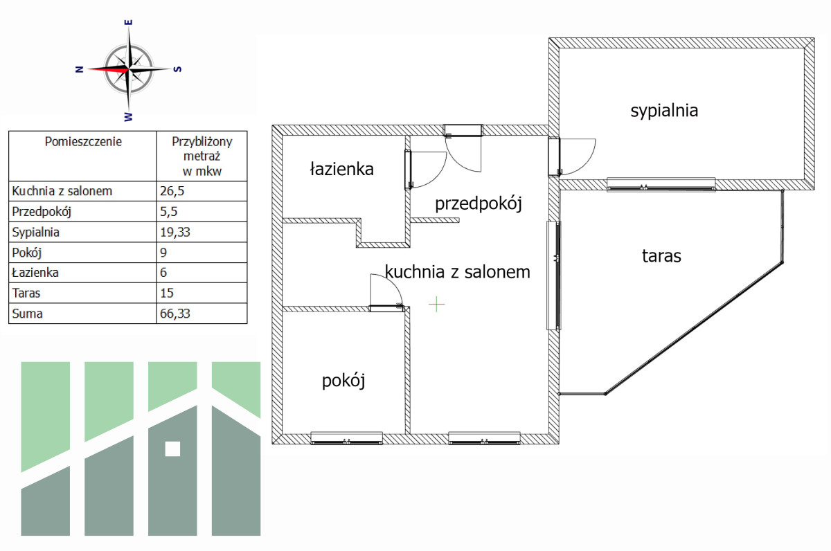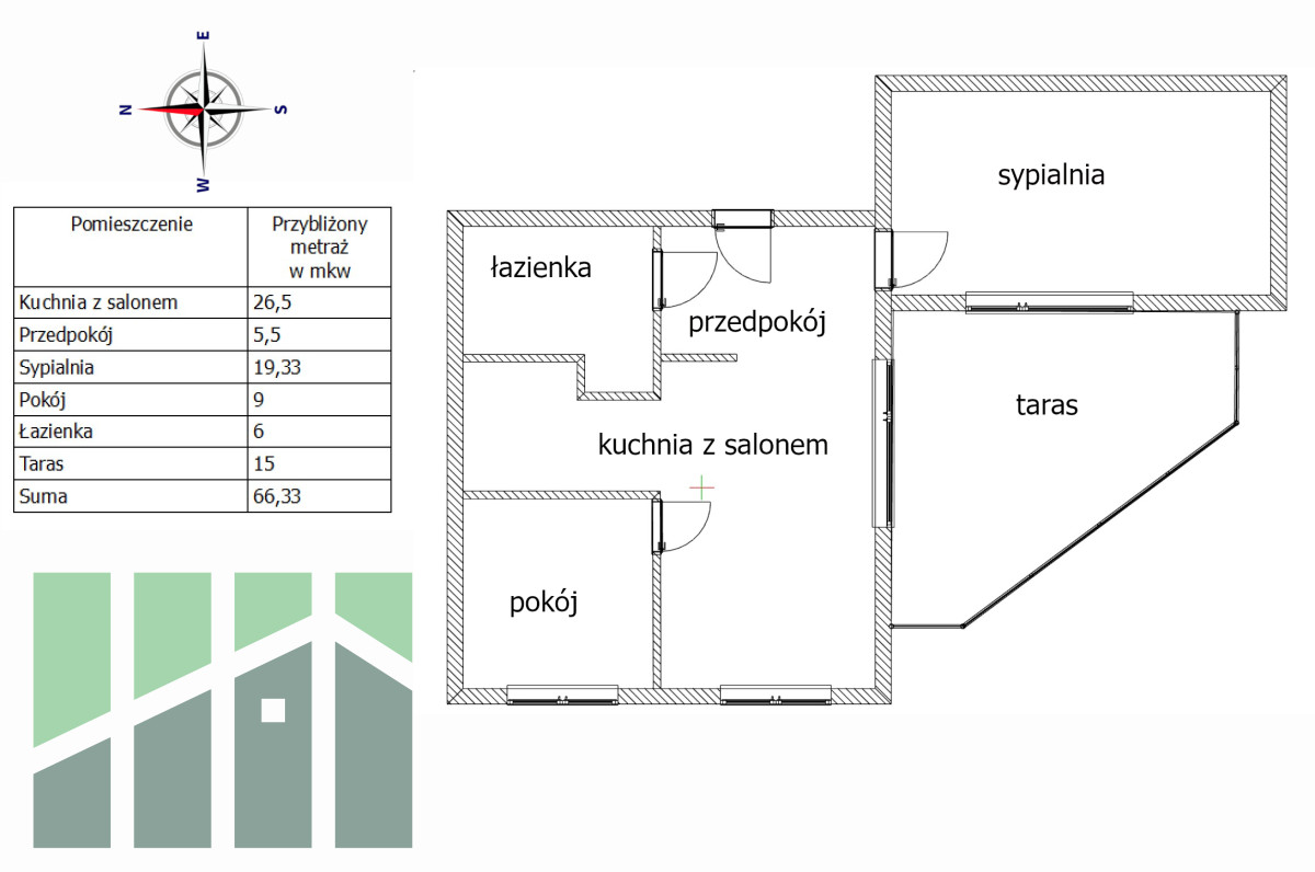 Przestronne i słoneczne mieszkanie o powierzchni 66,3 m², położone w spokojnej, kameralnej części Wrocławia – na Wojszycach.