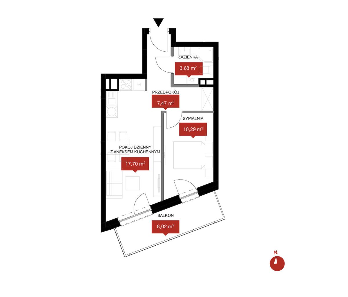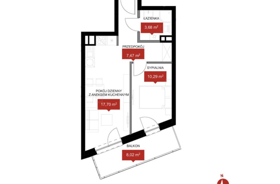 • łazienka -3,68 m2,