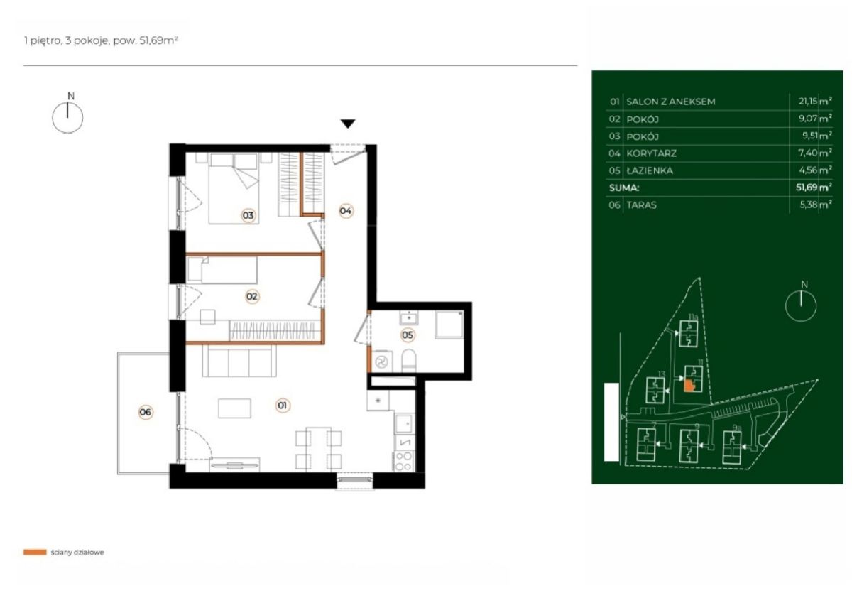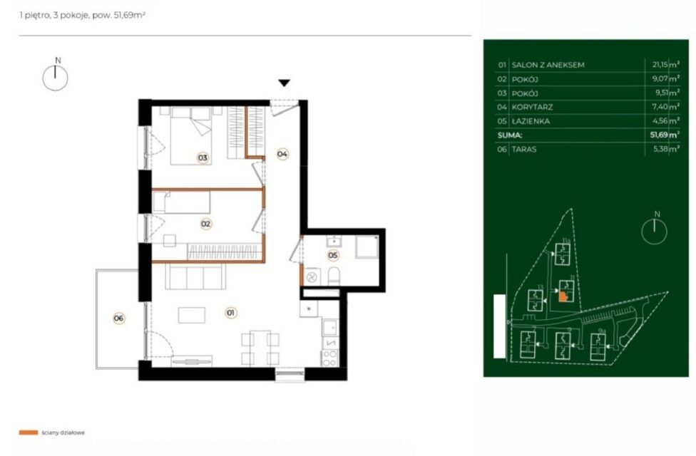 Układ mieszkania(51,69m2):