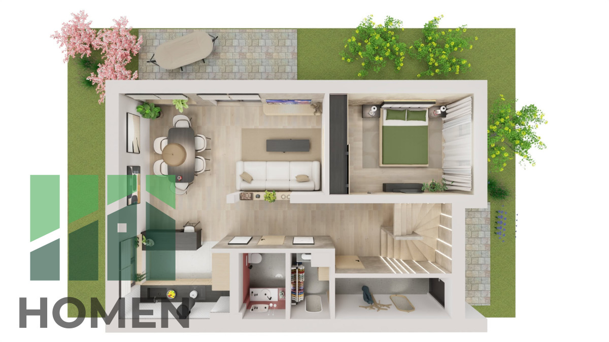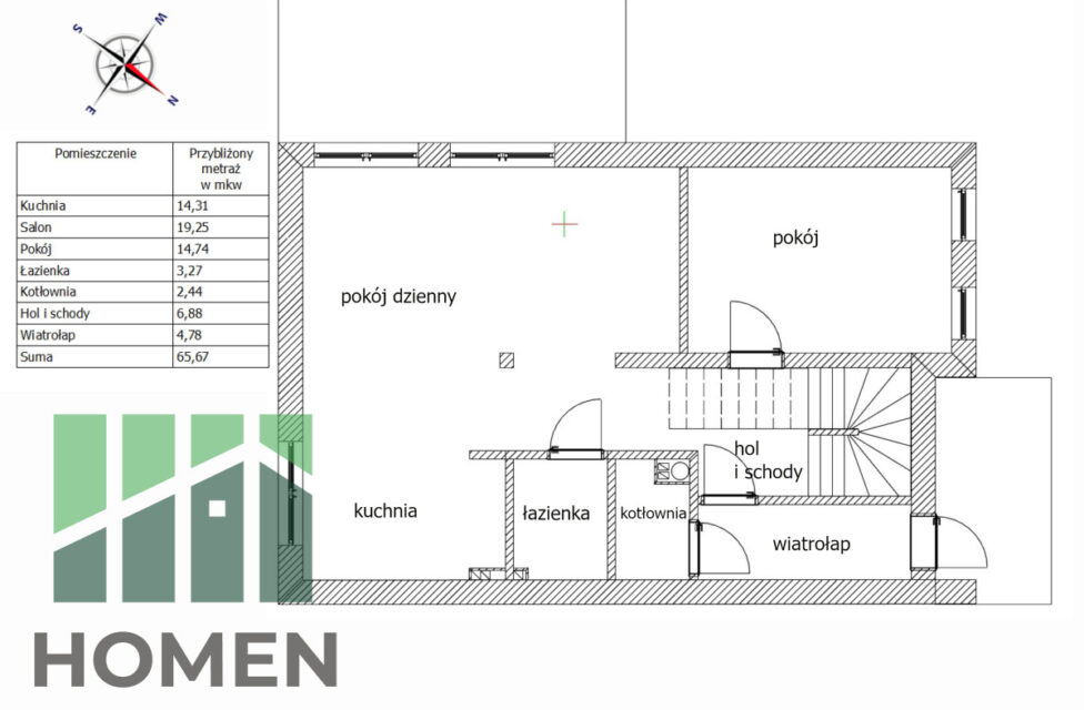 Parter: Duży salon, kuchnia, toaleta, kotłownia