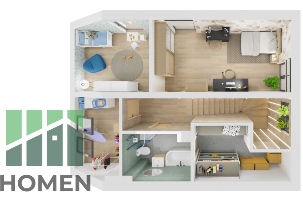Piętro: 3 sypialnie, łazienka, duża garderoba